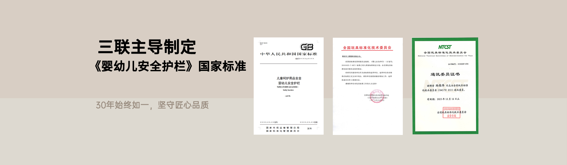 ? ? ? ? 近日,國家市場監(jiān)督管理總局、國家標準化管理委員會發(fā)布中華人民共和國國家標準公告(2025 年第 24 號),由瑞安市三聯(lián)塑料有限公司作為第四起草單位、公司產(chǎn)品經(jīng)理池俊偉擔(dān)任起草人的國家標準《兒童呵護用品安全 嬰幼兒安全護欄》(GB/T 46508-2025)正式獲批發(fā)布,并將于 2026 年 11 月 1 日起全面實施。這一標準的出臺,不僅填補了當前嬰幼兒圍欄類目缺乏統(tǒng)
